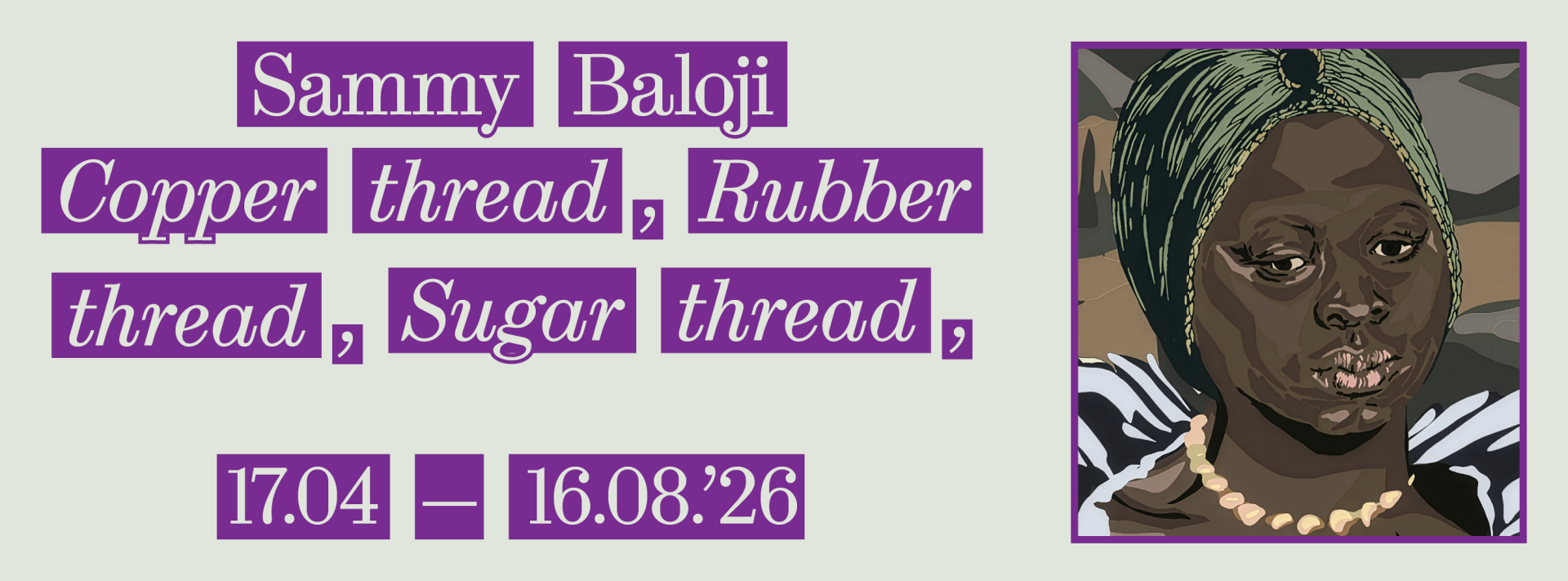 Aan de hand van wandtapijten, teksten en geluid brengt Baloji de complexe historische en culturele relaties tussen Centraal-Afrika en Europa in kaart. Materialen zoals koper, rubber en suiker – ooit centraal in de koloniale handel en winningssystemen – worden draden die verleden en heden met elkaar verbinden. Putten uit archieven, poëzie en de Congolese kasala-traditie, verweeft zijn werk herinnering, geschiedschrijving en speculatieve verhalen, en nodigt ons uit om opnieuw na te denken over hoe geschiedenissen worden geconstrueerd en hoe daaruit nieuwe verhalen kunnen ontstaan.
